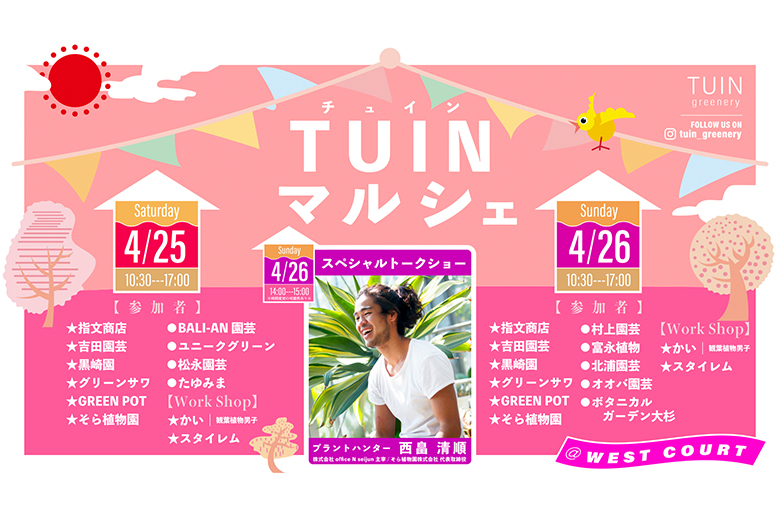 さらに、4月26日(日)14:00〜15:00には、TUINマルシェ スペシャルトークショーを実施。